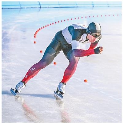 参赛选手在速度滑冰青少年组比赛中。