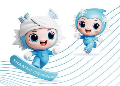 陕西省第一届冬季运动会吉祥物“榆宝宝”(左)和“林贝贝”。
