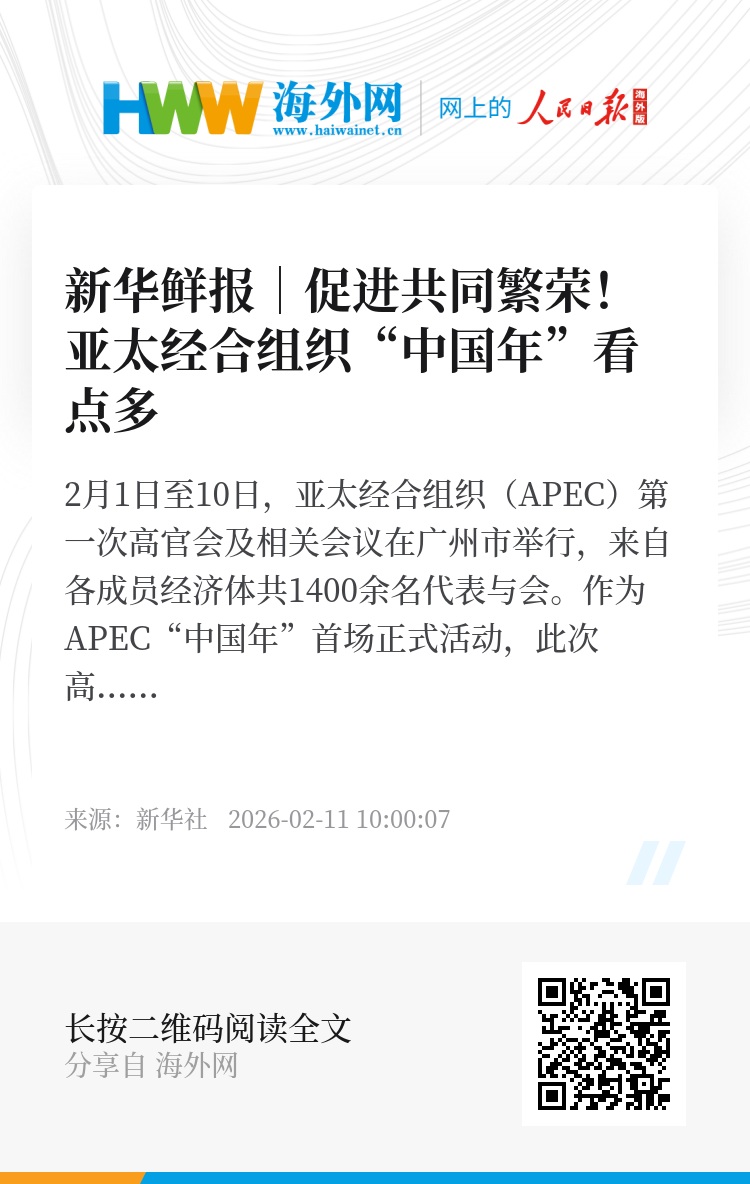 去年11月,习近平主席在韩国庆州APEC会议上明确表示,中方愿以担任东道主为契机,同各方携手构建亚太共同体。这为中方2026年主办APEC会议指明了方向,提供了根本遵循。