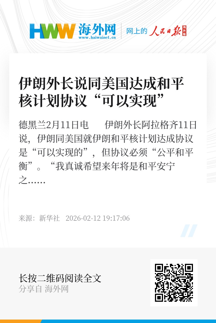 新华社德黑兰2月11日电 伊朗外长阿拉格齐11日说,伊朗同美国就伊朗和平核计划达成协议是“可以实现的”,但协议必须“公平和平衡”。