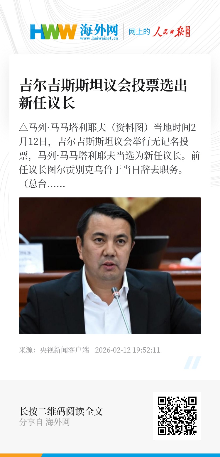 当地时间2月12日,吉尔吉斯斯坦议会举行无记名投票,马列·马马塔利耶夫当选为新任议长。