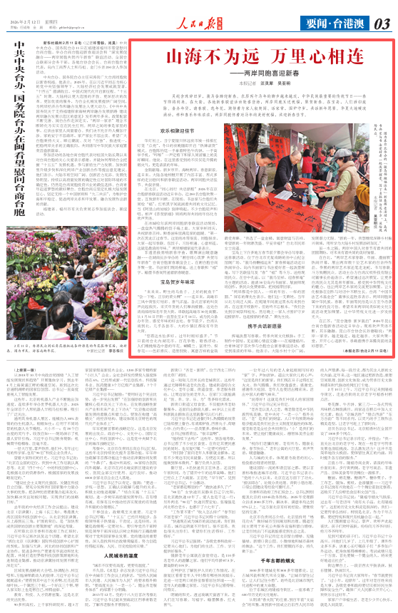 虽一水之隔,两岸中国人对春节有着共同的团圆期盼,对未来有着共同的美好憧憬。