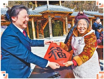 湖北十堰市郧阳区人民检察院检察官给村民送去新春“福”字。