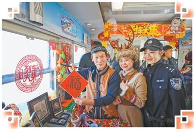哈尔滨开往加格达奇的K7103次列车上,非遗传承人为乘客表演节目、送上新春祝福。