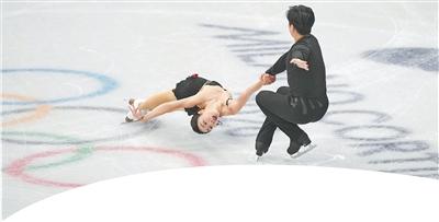 中国组合隋文静(左)/韩聪在花样滑冰项目团体赛双人滑短节目比赛中。