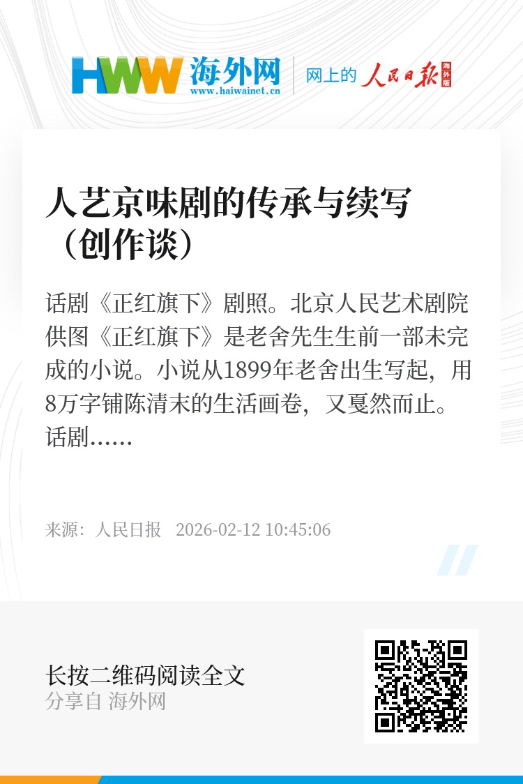 在北京人艺建院70年之后的新起点上,冯远征院长带着老中青三代演员同堂来新排《正红旗下》。作为该剧导演之一的我,把创作重心定在围绕“还原老舍精神内核”“舞台叙事转化”“时代共鸣构建”3个维度展开,在话剧民族化和“新京味”探索的路径上再出发。