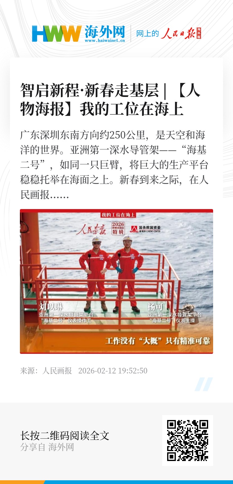 新春到来之际,在人民画报社和国务院国资委新闻中心联合开展的“开局‘十五五’ 奋企稳经济”暨新春走基层报道中,记者看到,在万家团聚之时,“海基二号”依然如常运转,这一切,离不开一支百余人的专业团队的维护。正是他们的默默坚守,让这座钢铁巨人持续守护着能源动脉的奔涌不息。