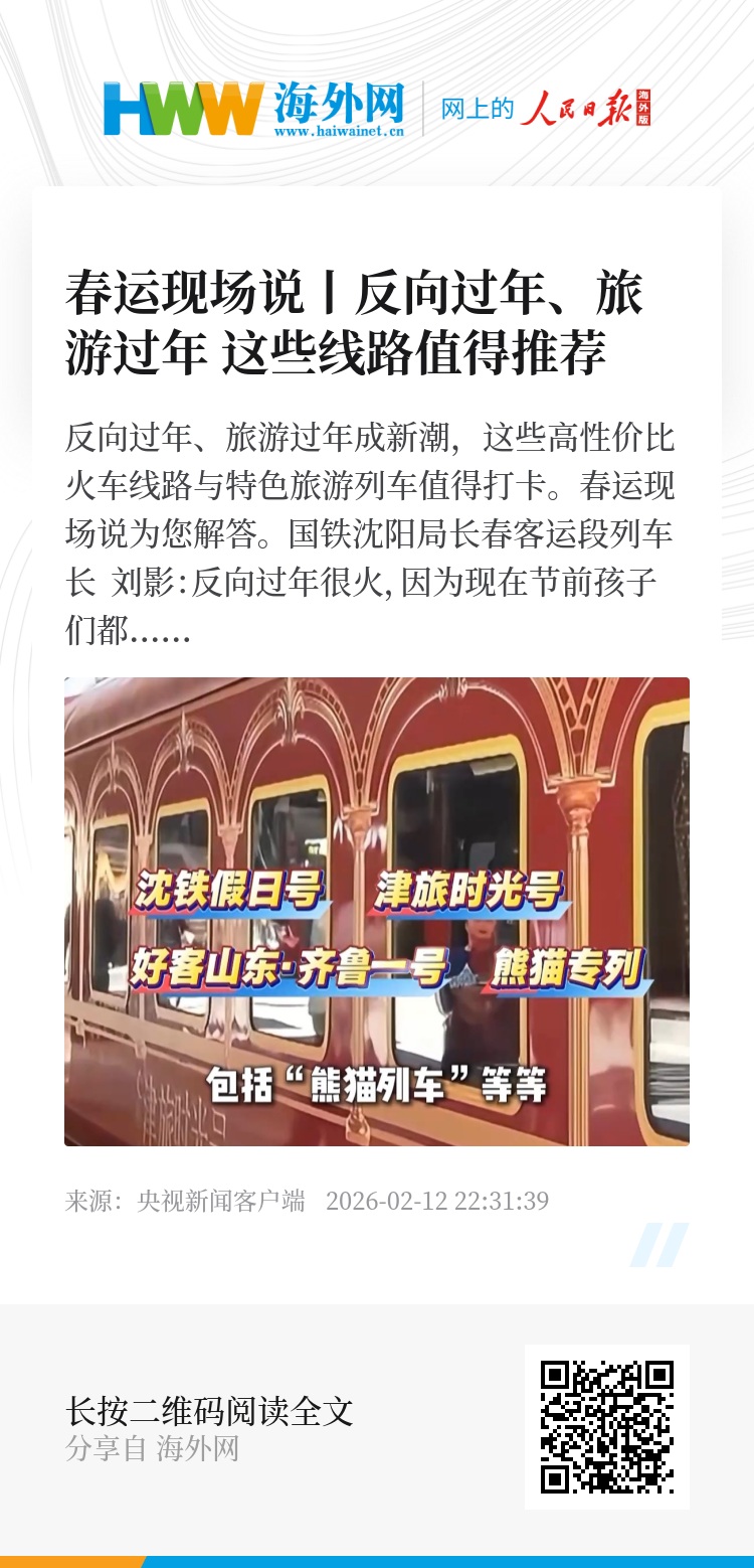 反向过年、旅游过年成新潮,这些高性价比火车线路与特色旅游列车值得打卡。春运现场说为您解答。