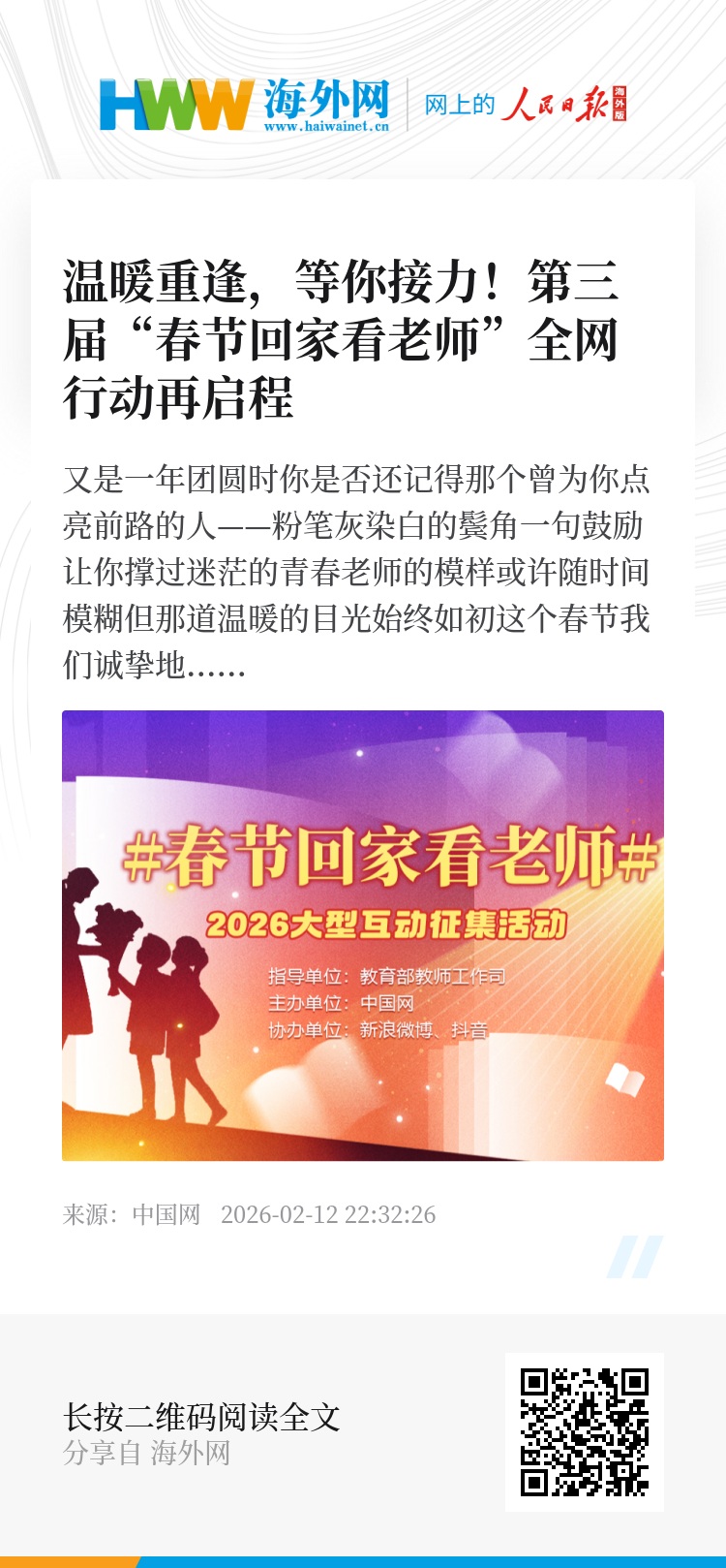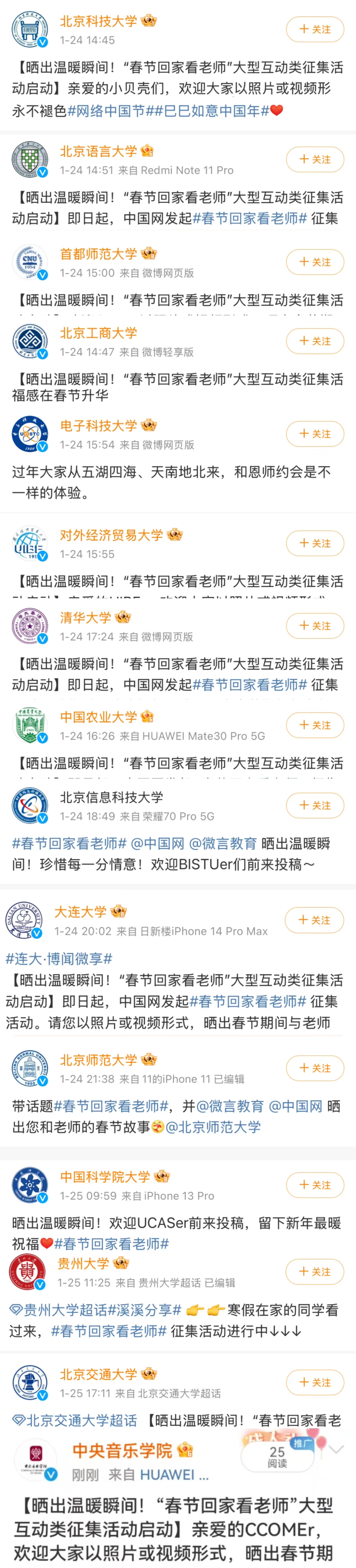 微博话题#春节回家看老师#阅读量累计突破数亿,一度冲上热搜榜前三。数十所高校与多家主流媒体联动响应,汇聚成一场对师恩的集体致敬。