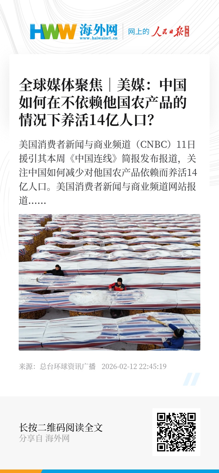 文章最后指出,这只是中国为减少对美国及其他国家粮食依赖所做努力的一个缩影。面对更加自给自足的中国,那些美国农民或许是时候需要寻找新的客户了。
