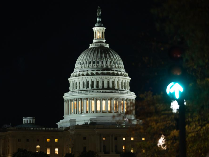 这是2025年11月12日在美国首都华盛顿拍摄的美国国会大厦。新华社记者胡友松摄