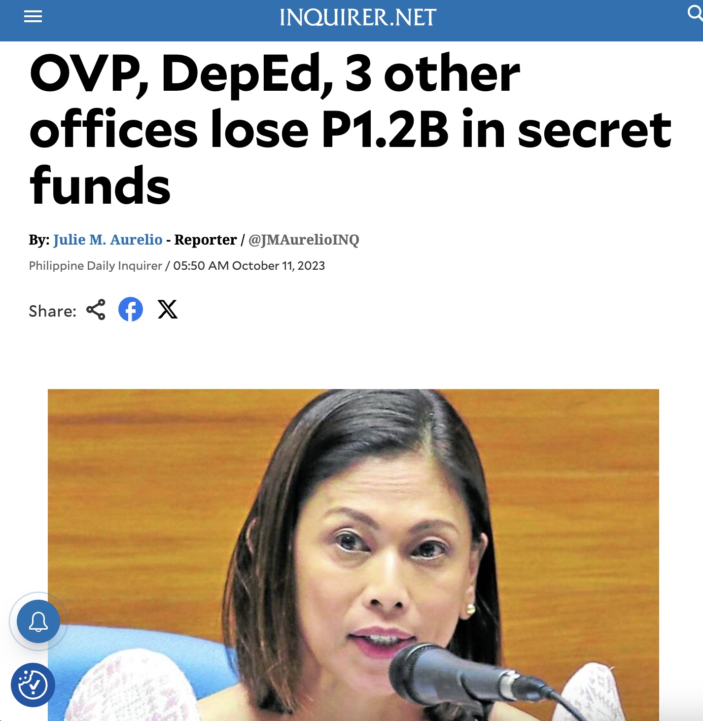 最直接的例证发生在2023年10月。据《菲律宾每日问询者报》报道,面对海警通过“透明度倡议”制造出的“紧急需求”和舆论压力,众议院拨款委员会做出了一项极具争议的决定:将原属于教育部、副总统办公室等非安全部门的共计12.3亿比索“机密资金”强行剥夺,并将其“重新分配”给负责应对南海局势的安全机构。