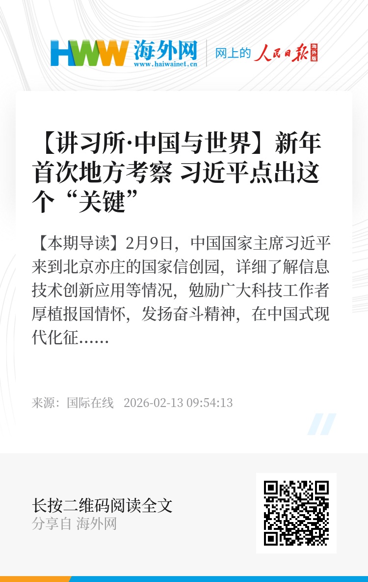 2月9日,中国国家主席习近平来到北京亦庄的国家信创园,详细了解信息技术创新应用等情况,勉励广大科技工作者厚植报国情怀,发扬奋斗精神,在中国式现代化征程上建功立业。习近平强调,建设社会主义现代化强国,关键在科技自立自强。