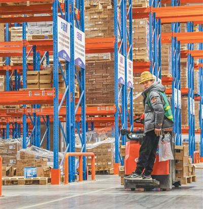 近日,在浙江省金华市金东区金义综合保税区保税仓库,工作人员正在忙着运送进口商品。