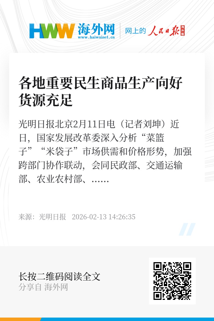 光明日报北京2月11日电(记者刘坤)近日,国家发展改革委深入分析“菜篮子”“米袋子”市场供需和价格形势,加强跨部门协作联动,会同民政部、交通运输部、农业农村部、商务部、市场监管总局印发通知,部署做好重要民生商品保供稳价和困难群众兜底保障工作。