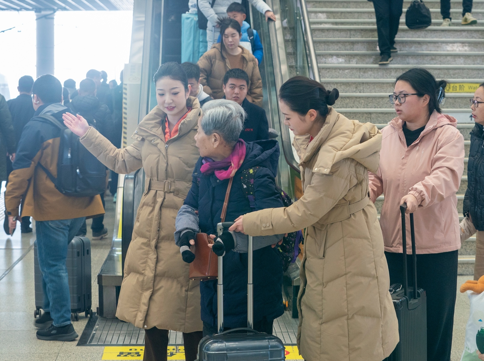交通部门的适老化服务全面升级,努力把“怕出门”变成“敢出门”:12306上线敬老版界面,字体更大、操作更简,购票自动优先分配下铺;车站专设爱心窗口、银发服务台,保留现金购票、提供老花镜与大字指引;进站走绿色通道,优先安检、优先检票;65岁以上单独出行、行动不便的老人,可预约重点旅客全程陪护,从进站、候车、上车到出站,专人对接、一路护送。