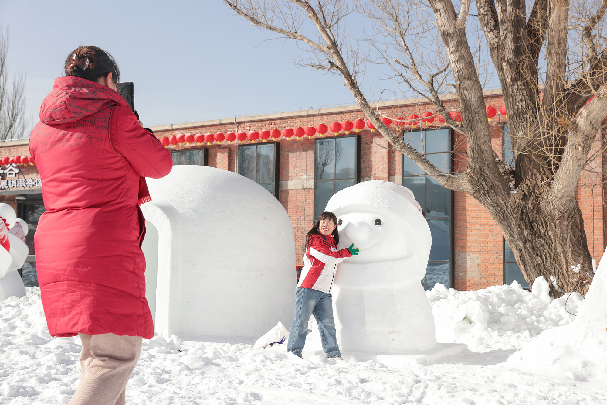 北京延庆,市民长城脚下过小年