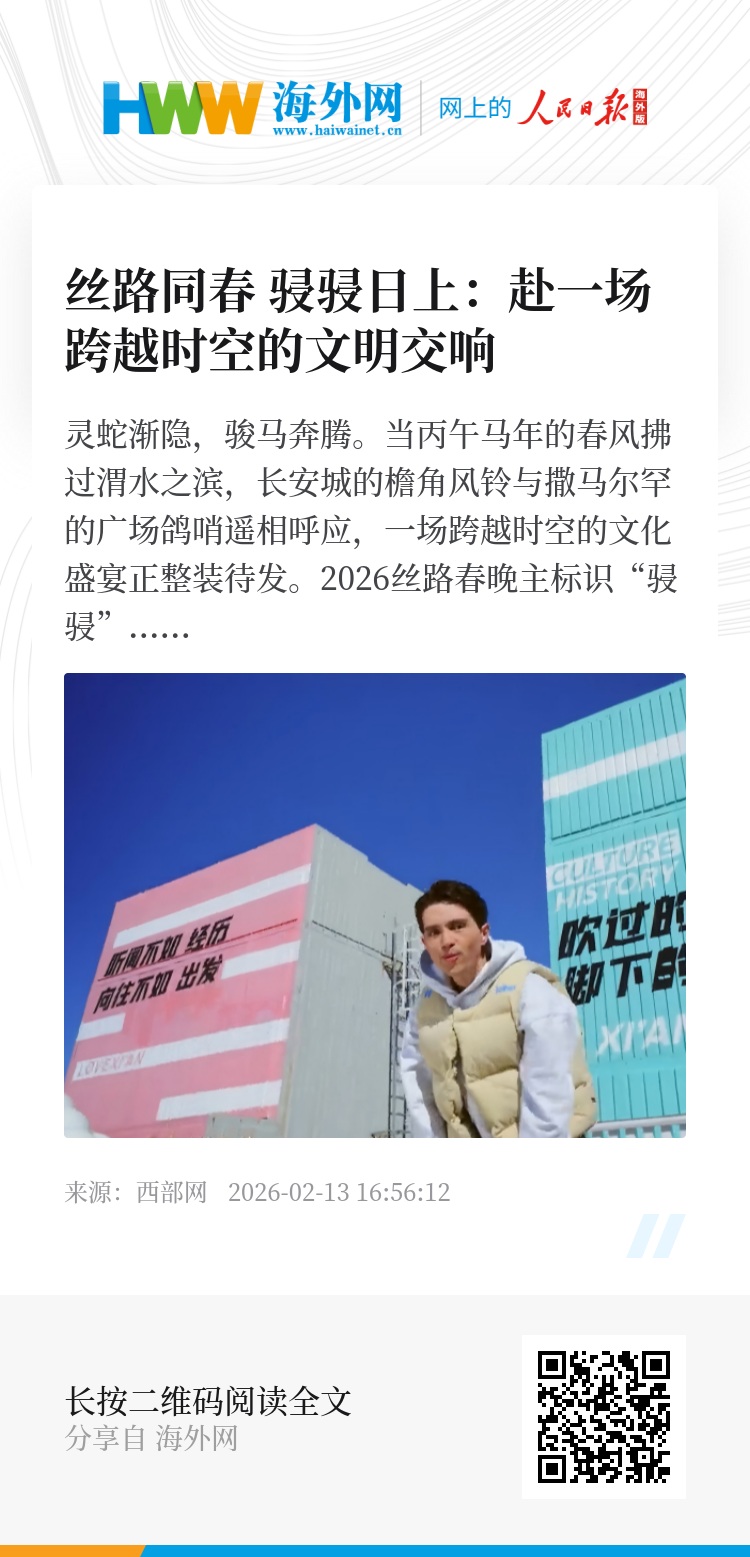 2026年农历大年初一,让我们共赴这场跨越时空的春日之约:在长安遇见中亚,在古韵邂逅新风,在丝路起点拥抱世界。当钟声敲响,愿这曲文明交响化作骎骎日上的万千气象,伴我们一同迈入温暖欢愉的丙午马年。