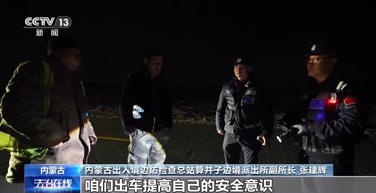 内蒙古出入境边防检查总站算井子边境派出所副所长张建辉:马上过年了,出来挣个辛苦钱,老婆孩子还都在家,咱们出车提高自己的安全意识,平平安安出行,快快乐乐回家。
