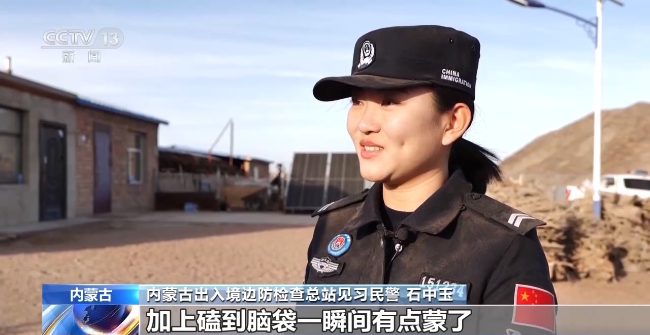 内蒙古出入境边防检查总站见习民警 石中玉:承受得了,就是可能太累了,加上磕到脑袋一瞬间有点蒙了,各种情绪积压在一起,感觉有点绷不住。干活的时候想家了。