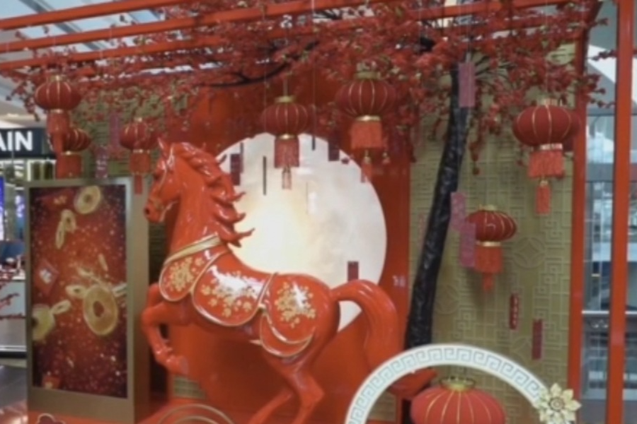 总台记者 李霜溪:春节临近迪拜机场的客流量非常大,在这里我看到机场的四处已经换上了春节装饰,大家一起共庆中国新年。