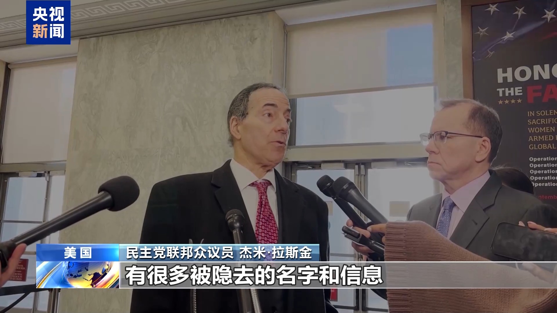 民主党联邦众议员 罗·康纳:让我们更加担忧的是,在我们看到的文件中仍然有很多信息被隐去。这起丑闻在多国都带来震荡,也在美国国内造成了巨大压力。