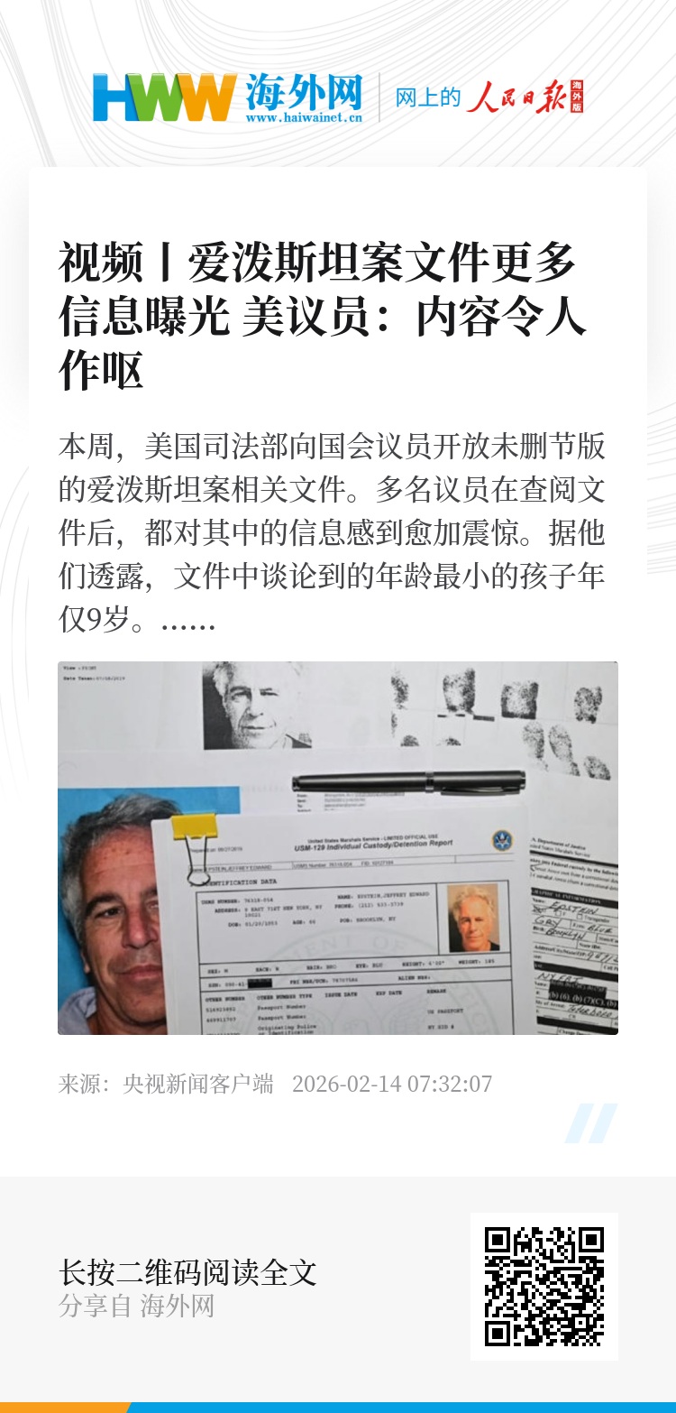 本周,美国司法部向国会议员开放未删节版的爱泼斯坦案相关文件。多名议员在查阅文件后,都对其中的信息感到愈加震惊。据他们透露,文件中谈论到的年龄最小的孩子年仅9岁。