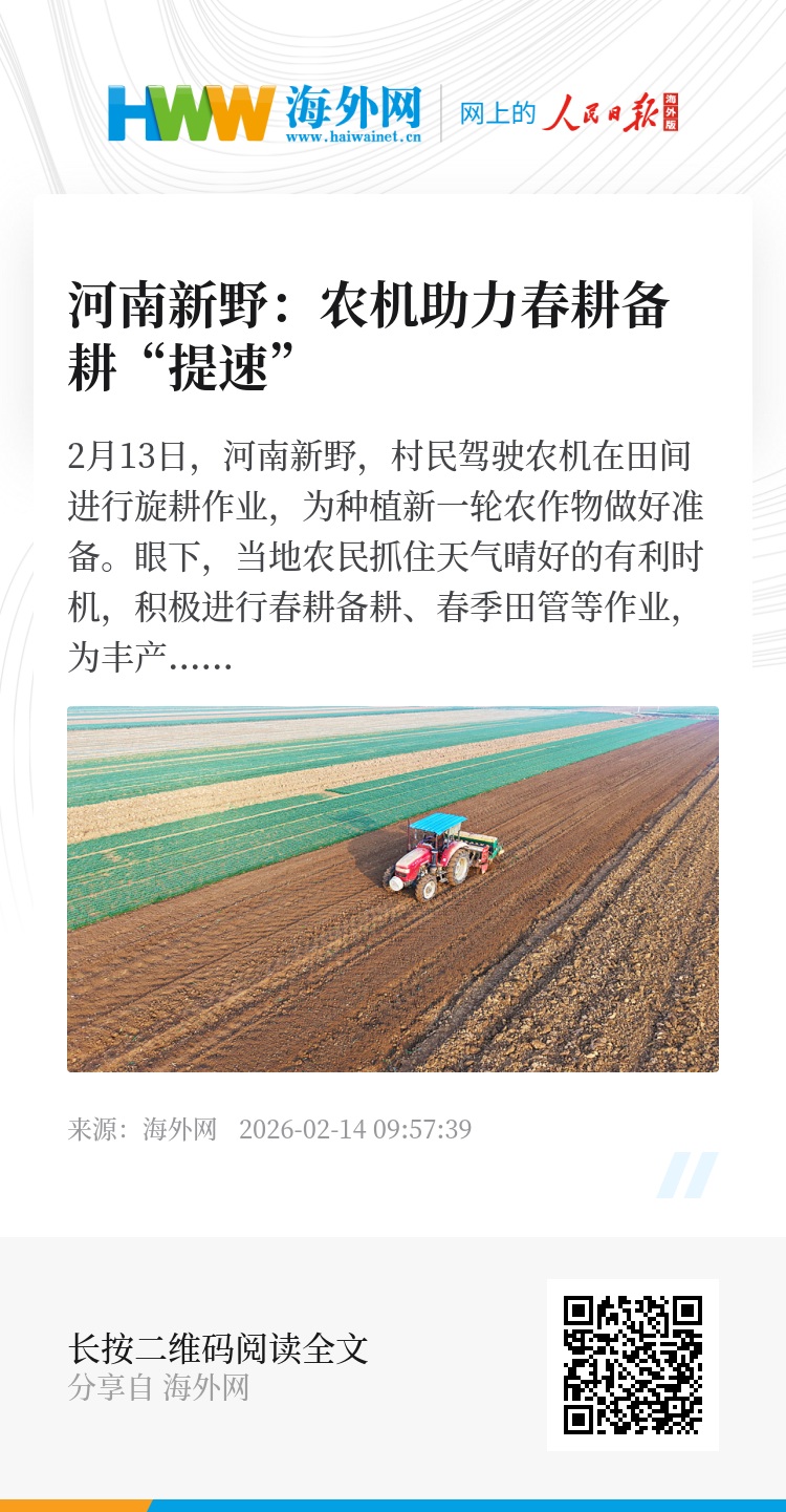 2月13日,河南新野,村民驾驶农机在田间进行旋耕作业,为种植新一轮农作物做好准备。眼下,当地农民抓住天气晴好的有利时机,积极进行春耕备耕、春季田管等作业,为丰产丰收打实基础。图源:视觉中国