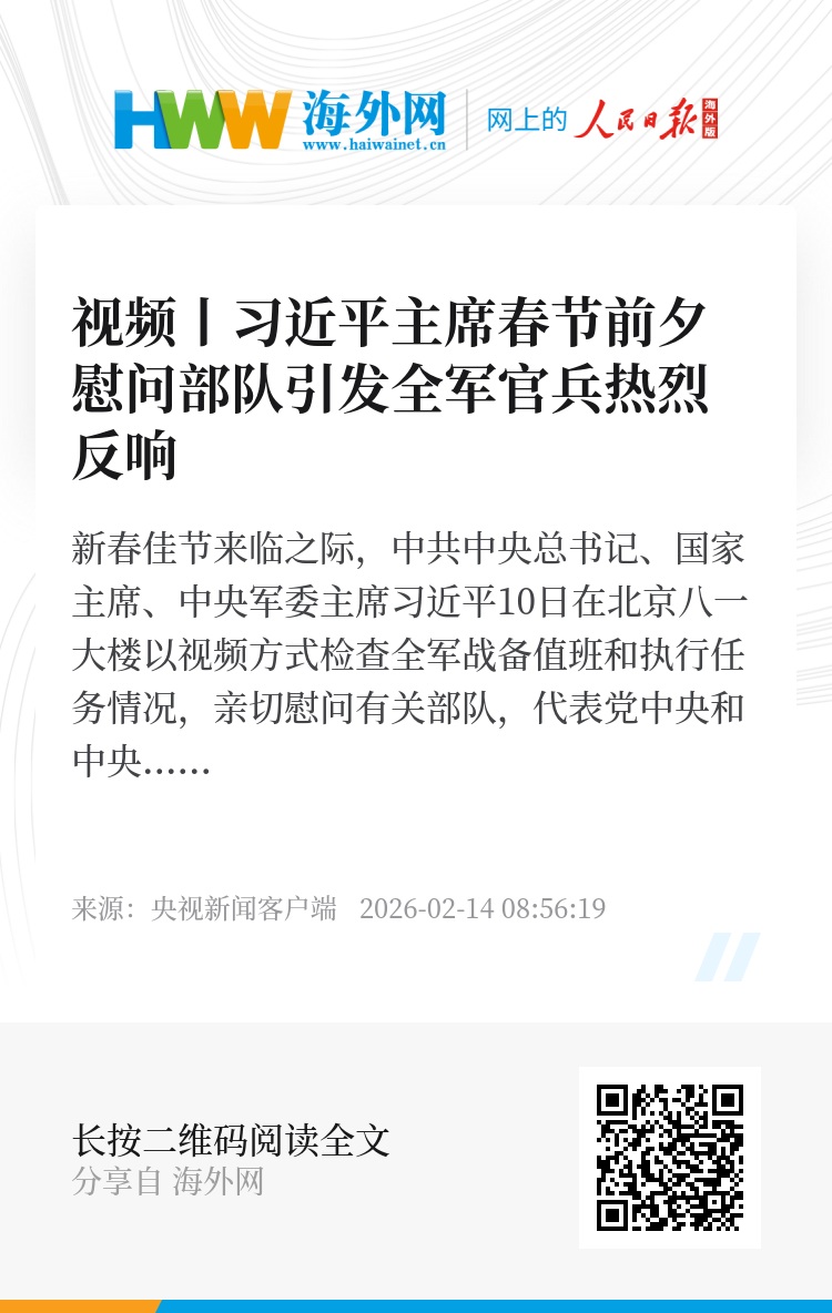 武警陕西总队西安支队 曹军:在执勤一线收到习主席的新春祝福,深切感受统帅的关怀牵挂。看到国家繁荣昌盛、人民幸福生活的热闹场景,倍感在战位上为祖国和人民守岁很有意义。春节期间,部队还注重科学统筹战备和生活,安排了形式多样的文体娱乐活动,让大家过节过得暖心安心;各类执勤值班保持规定状态,守护驻地平安。