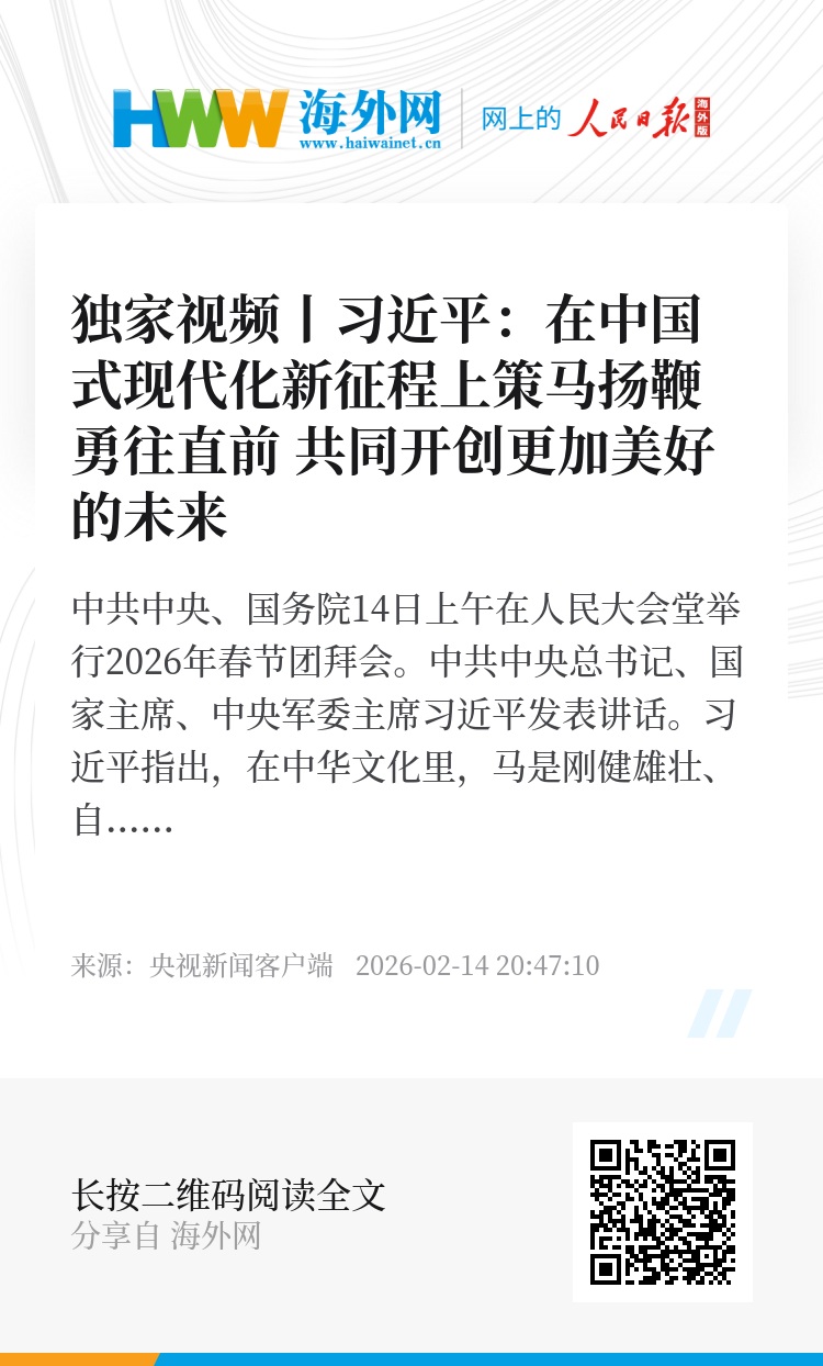 中共中央、国务院14日上午在人民大会堂举行2026年春节团拜会。中共中央总书记、国家主席、中央军委主席习近平发表讲话。