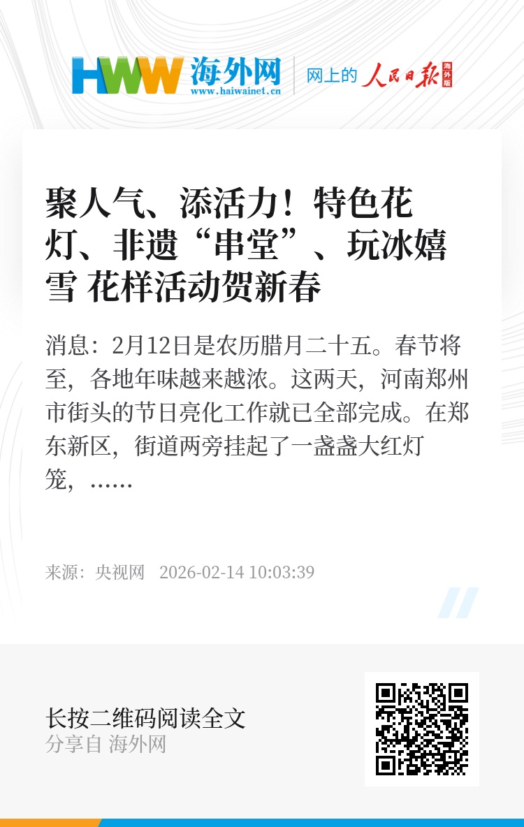 央视网消息:2月12日是农历腊月二十五。春节将至,各地年味越来越浓。这两天,河南郑州市街头的节日亮化工作就已全部完成。