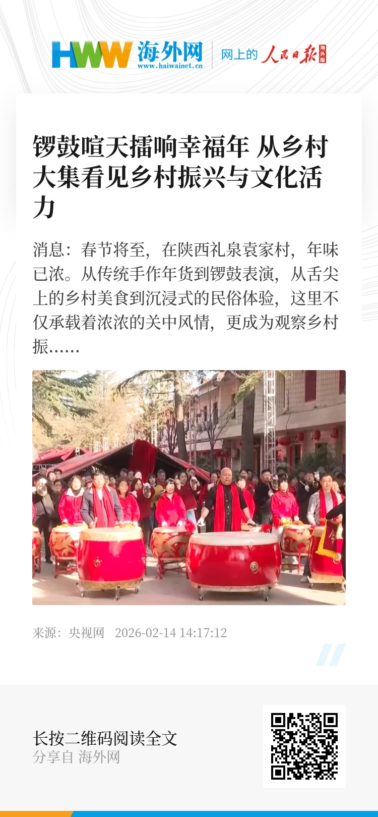 总台记者 张恩雨:其实,当我们把目光从具体的年货大集、锣鼓表演、特色美食上移开,重新审视这座村庄,袁家村为什么能“卖爆”?为什么“火”了十几年,依然热度不减?答案是两个字:体验。我们看到这里不是把民俗“搬”进景区,而是让村民“活”在景区。从年货大集的摊主到锣鼓大赛的鼓手,从后厨掌勺的师傅到做传统手艺的艺人,他们是生产者,也是表演者,更是受益者。这种“村民主体、文旅融合”的模式,让袁家村成了一个自带生命力的文化生态场。