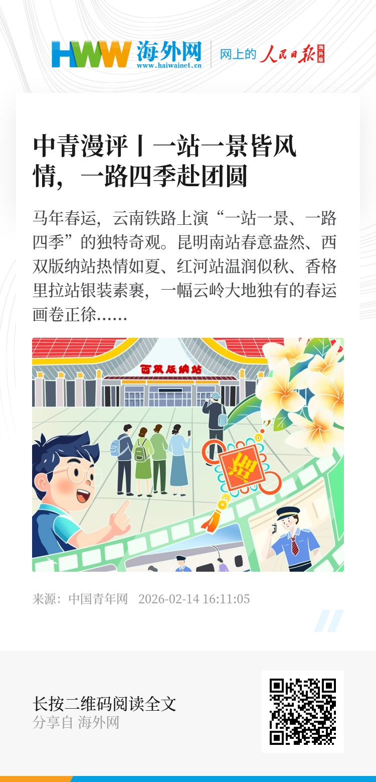 四季流转皆是景,一路欢歌赴团圆。云南铁路以地理之美、人文之韵、服务之暖,让春运不仅是归家之路,更是遇见云南的美好之旅。(文字/向攀漫画/栗也茹 编辑/杨宇鑫)
