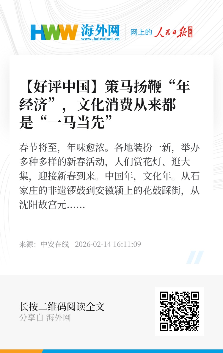 中国春节,全民融入,全球瞩目。让“年味”更醇厚,就要让文化市场持续兴起来。期待各地在供需两端持续发力,让春节文化市场不仅“火起来”,更能“一直火”、“火出圈”。希冀各地紧跟市场需求,创造更丰富、更优质的春节文化产品与服务,多角度打造新春文化消费新场景。