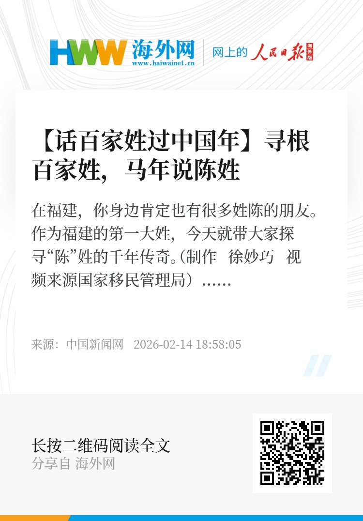 在福建,你身边肯定也有很多姓陈的朋友。作为福建的第一大姓,今天就带大家探寻“陈”姓的千年传奇。(制作 徐妙巧 视频来源国家移民管理局)