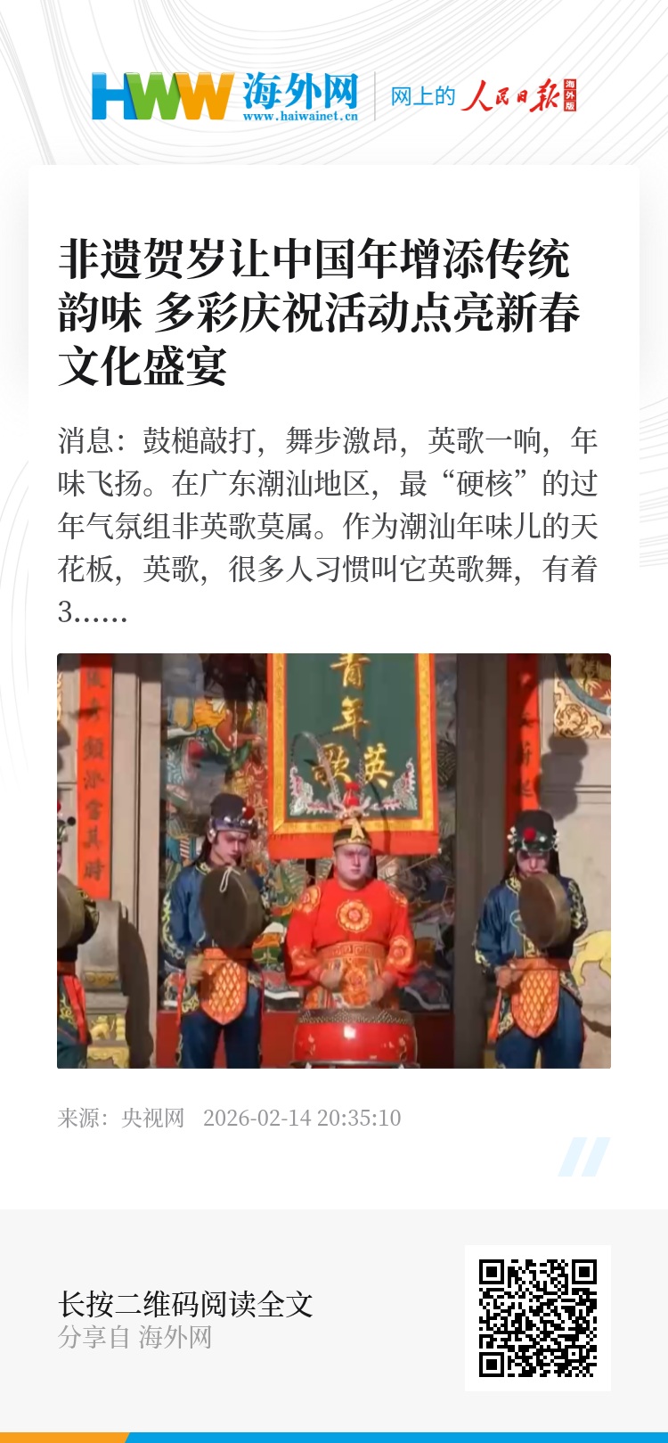 鼓槌敲打 舞步激昂 英歌一响年味飞扬