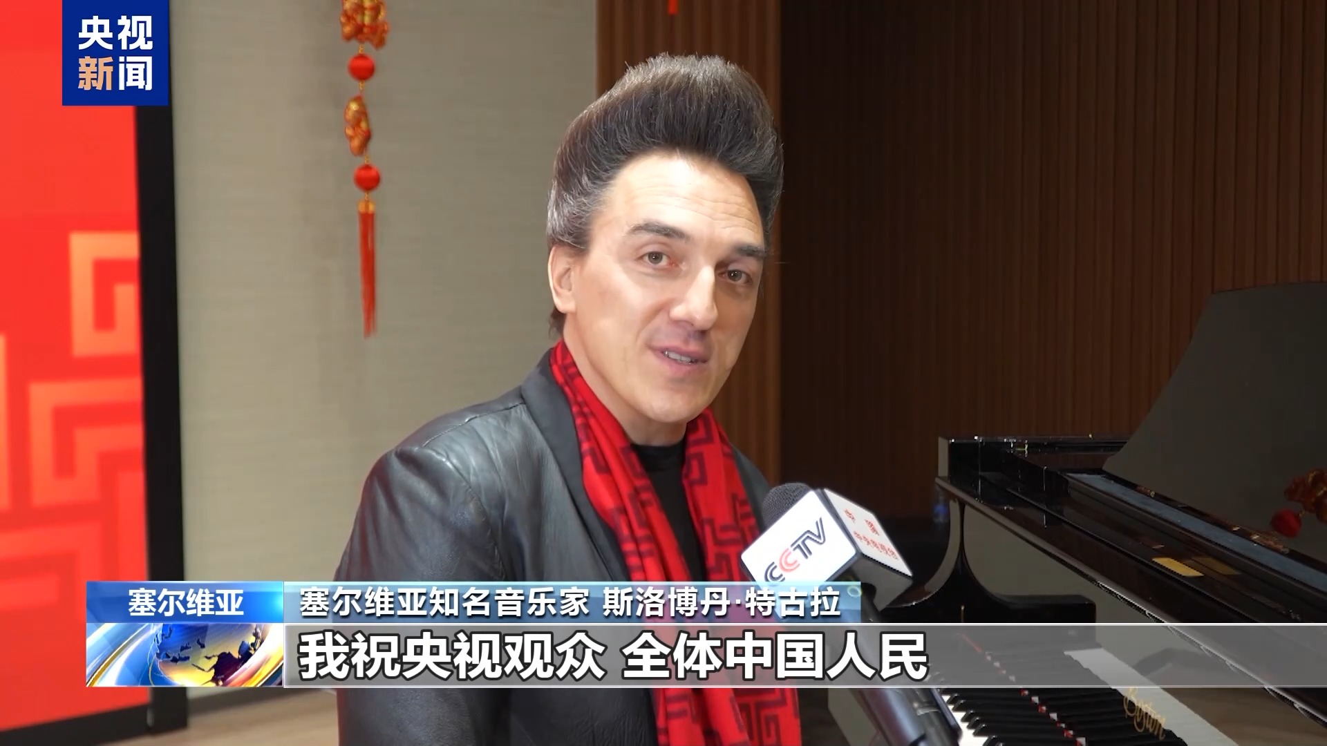 塞尔维亚知名音乐家 斯洛博丹·特古拉:我祝央视观众、全体中国人民及其亲朋好友马年万事如意,新的一年事业有成,爱情美满,财源广进,身体健康,幸福快乐。新春快乐,马上幸福。