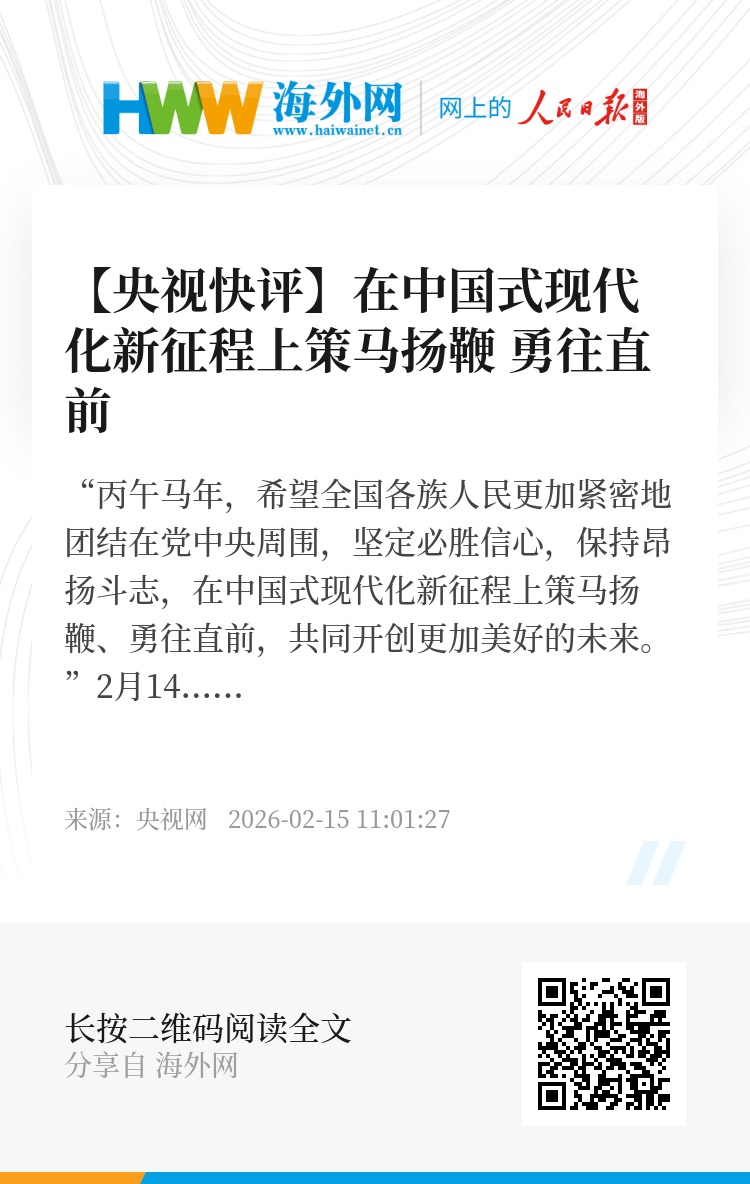 “丙午马年,希望全国各族人民更加紧密地团结在党中央周围,坚定必胜信心,保持昂扬斗志,在中国式现代化新征程上策马扬鞭、勇往直前,共同开创更加美好的未来。”2月14日,中共中央、国务院在北京人民大会堂举行2026年春节团拜会。习近平总书记发表热情洋溢的重要讲话,向全国各族人民,向香港特别行政区同胞、澳门特别行政区同胞、台湾同胞和海外侨胞拜年。
