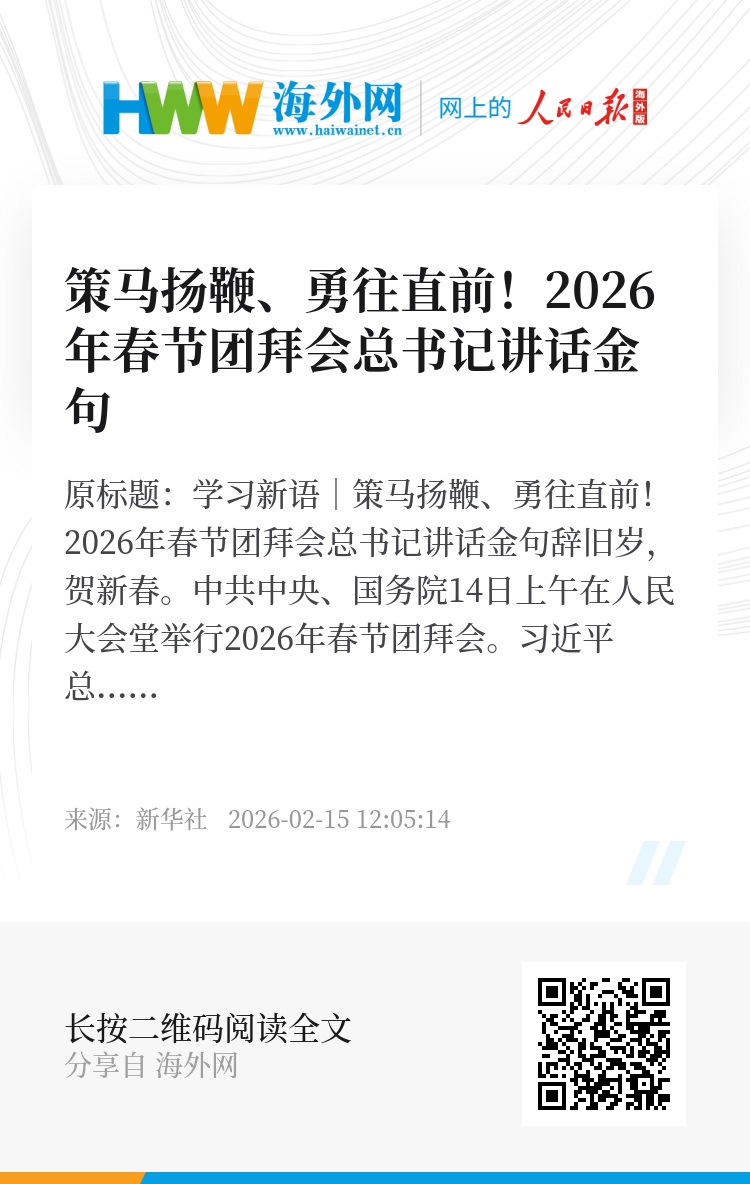 原标题:学习新语|策马扬鞭、勇往直前!2026年春节团拜会总书记讲话金句