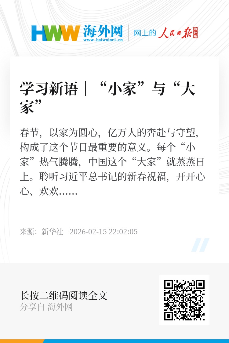 春节,以家为圆心,亿万人的奔赴与守望,构成了这个节日最重要的意义。每个“小家”热气腾腾,中国这个“大家”就蒸蒸日上。聆听习近平总书记的新春祝福,开开心心、欢欢乐乐过好年!
