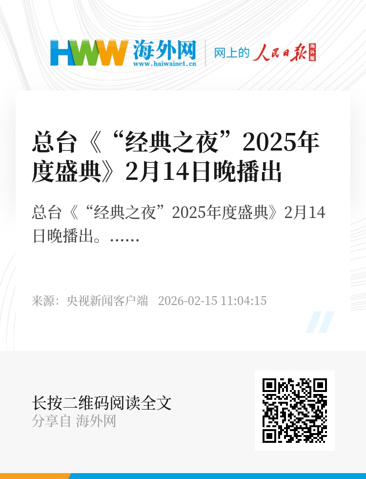 总台《“经典之夜”2025年度盛典》2月14日晚播出。