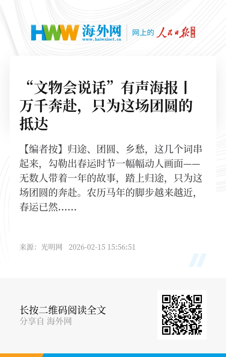 【编者按】归途、团圆、乡愁,这几个词串起来,勾勒出春运时节一幅幅动人画面——无数人带着一年的故事,踏上归途,只为这场团圆的奔赴。农历马年的脚步越来越近,春运已然成为乡愁印在车轮上的“集体迁徙”。跨越千年,古人在年终岁尾是否也是如此。本期“文物会说话”有声海报专栏,精选多件文物,通过有声海报和AI配音等形式,讲述古人关于团圆、乡愁的故事。这些,与归途中的你,有多少“近乡情怯”的共鸣。