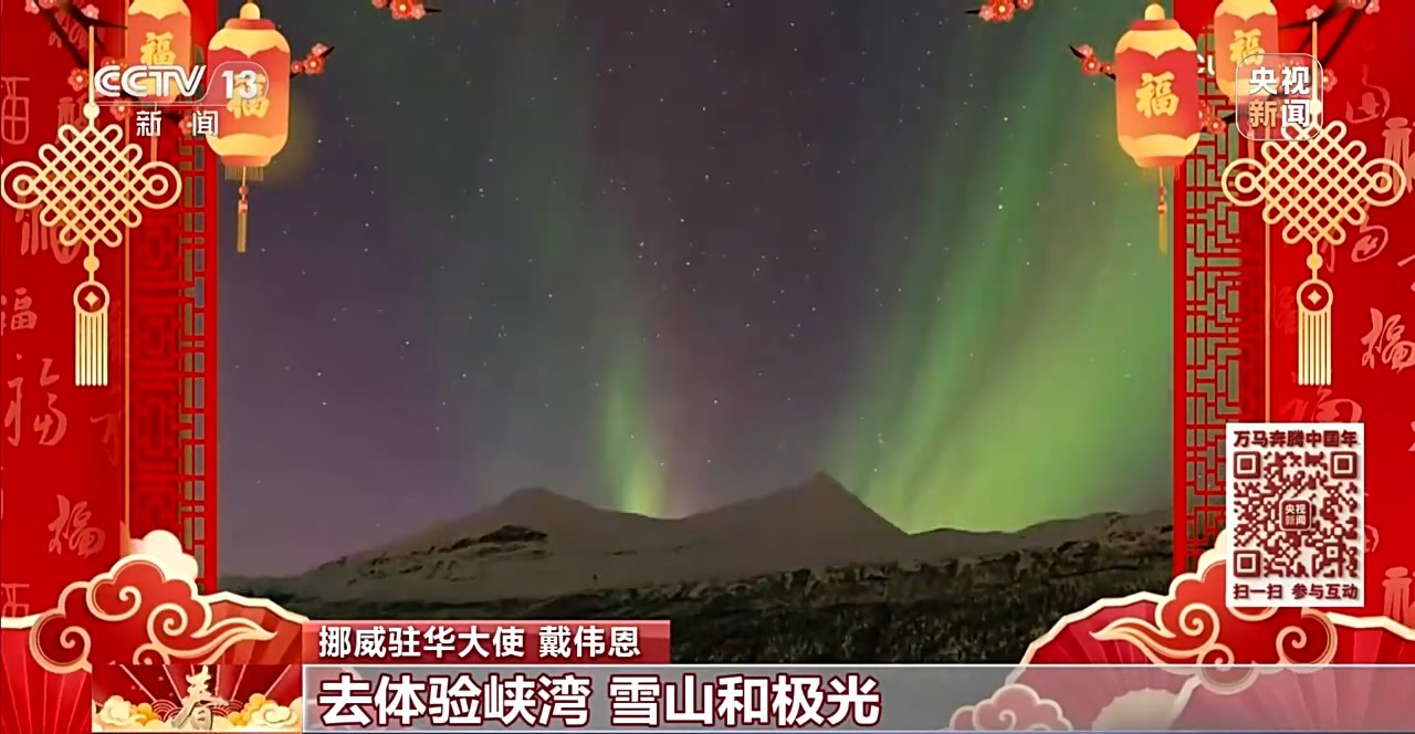 挪威驻华大使 戴伟恩:人人都需要属于自己的仪式和节日,和亲友相聚、享用美食,回顾过去一年、憧憬新的一年。在这方面,挪威和中国是一样的,我们会同自己最喜爱、最亲近的人相伴,包括家人和朋友,会准备特色美食。还有一个活动也是受到中国春节的启发,我们会在元旦放烟花。在冬季最黑暗的夜晚,我们就会点亮中国的烟花。
