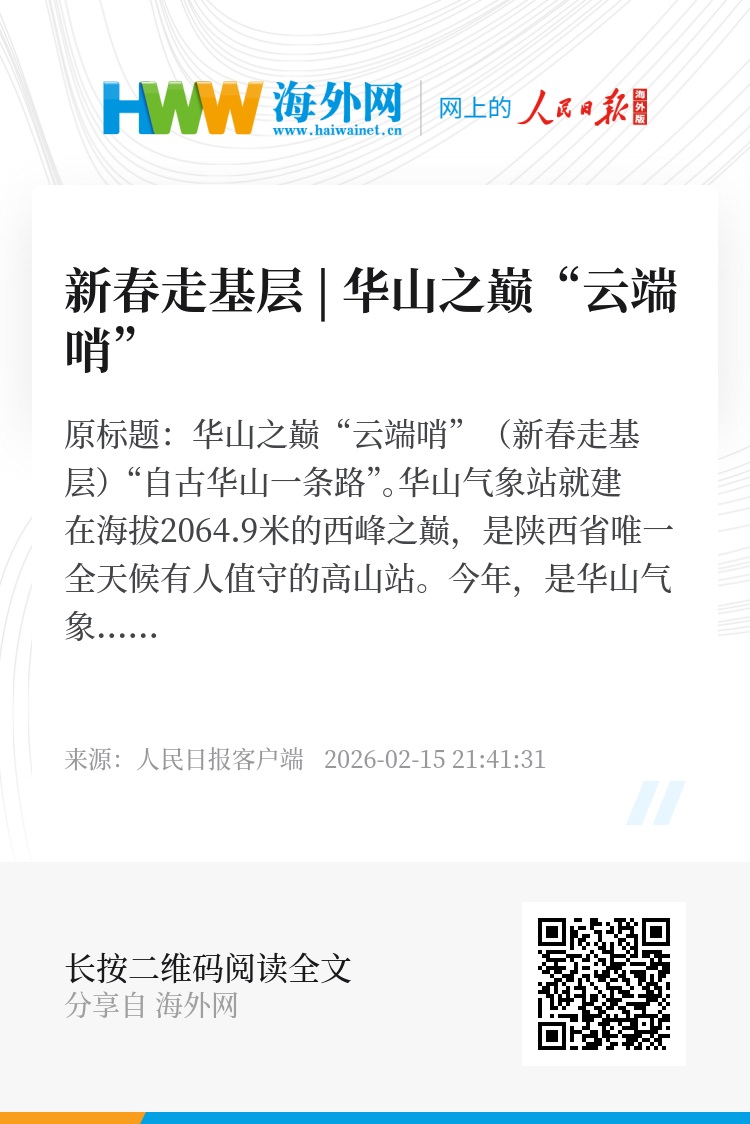 夜间10时,华山峰顶一片寂静。团圆之际,绝壁之上,两层小楼透着光,静静守护着万家灯火。