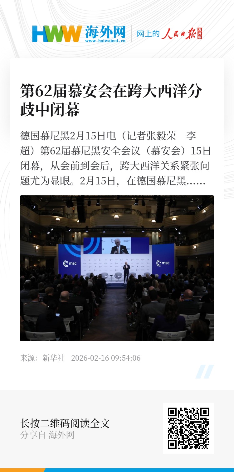 新华社德国慕尼黑2月15日电(记者张毅荣 李超)第62届慕尼黑安全会议(慕安会)15日闭幕,从会前到会后,跨大西洋关系紧张问题尤为显眼。