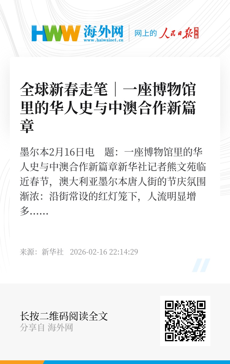 新华社墨尔本2月16日电 题:一座博物馆里的华人史与中澳合作新篇章