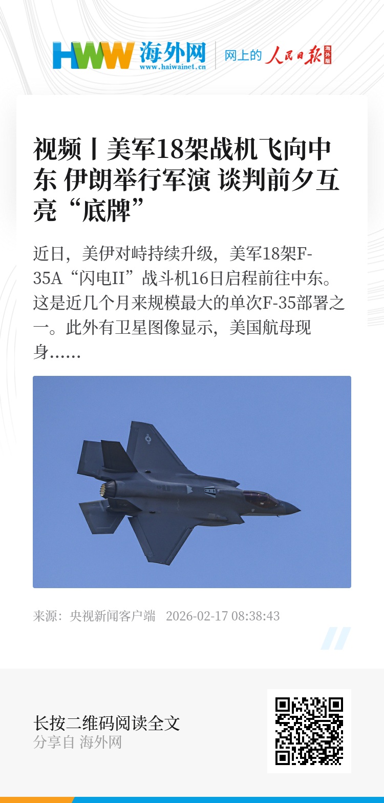 伊朗外交部长阿拉格齐16日表示,伊朗不会屈服于威胁。阿拉格齐当天在社交媒体发文说:“我在日内瓦,带着能达成公平公正协议的真实想法而来。‘在威胁面前屈服’不在讨论范围内。”