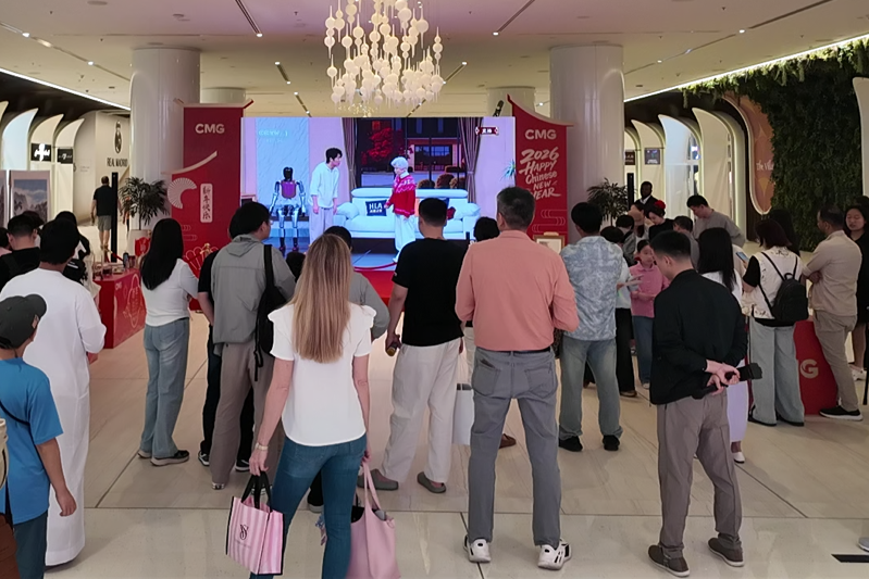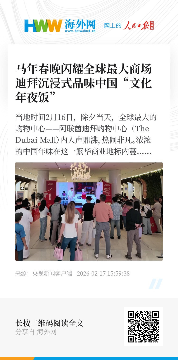 当地时间16时,总台《2026年春节联欢晚会》拉开序幕,将现场气氛推向高潮,吸引了购物中心内全球游客与当地民众驻足围观。其中,一些外国游客首次接触春晚便印象深刻。更有每年都看春晚的华人华侨,分享属于自己的春晚独家记忆。春晚这道“文化年夜饭”,如今不仅成为中华儿女的特殊情感链接,更是跨越国界,激起国际友人的跨文化共鸣。