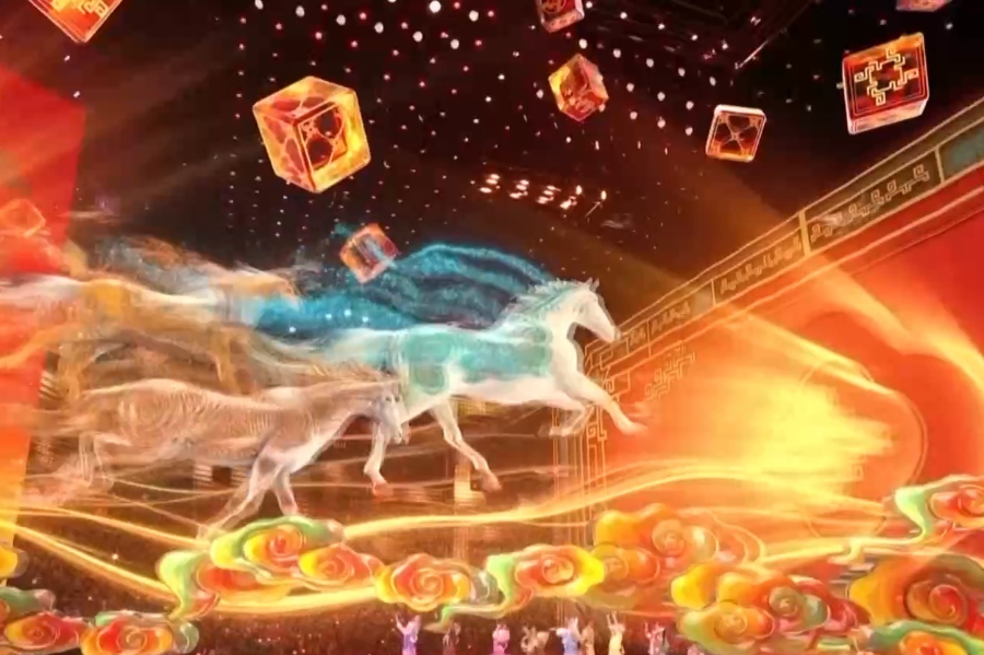 总台马年春晚从中华优秀传统文化中汲取智慧和力量,将寓意自强不息、锐意进取的生肖马元素巧妙融入创作,坚持“思想+艺术+技术”融合传播,不断拓宽艺术表达边界。舞美设计中,灵活运用AI、AR、XR等科技手段,在虚实之间营造出“人在景中、景随人动”的沉浸立体式视觉效果。