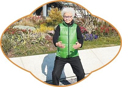 上海静安区,居民史季枫在“口袋公园”打八段锦。本报记者 田 泓摄